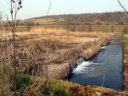 From this process, some strategies have been designed based on sequences of ponds with a slow flow of water to clean polluted water with radionuclides. The results of these facilities, for flows of 1000 liters of effluent are about 95% retention of radiation in the first pond (by plants and sludge), and over 99% in three-base systems.[33]