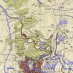1870s map 1940s map modern map 1940s with modern overlay mapA series of historical maps of the area around Biriyya (click the buttons) | |