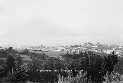 Lake Road, connecting Northcote and Birkenhead, was significantly improved in the 1870s, helping development in Birkenhead.[10] This was aided further by the Auckland Harbour Board constructed a wharf in 1882, which was followed by a post office in 1884.[10] The new wharf allowed orchardists in Birkenhead to better transport produce to the Auckland market,[10] further helped by larger orchardists building their own jetties on Oruamo or Hellyers Creek in the north.[42] In 1886, the Birkenhead and Northcote Fruitgrowing Association was formed.[43]
