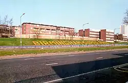 The Birmingham SuperPrix circuit was laid down on public roads, just to the south of Birmingham City Centre. Slightly unusually the circuit ran anticlockwise. The start-finish straight was in the southbound lane of Bristol Street, the A38 road. The pit area was located on the forecourt of the Bristol Street Motors Ford dealership, with garaging for teams and cars housed in a multi-storey car park adjacent.
