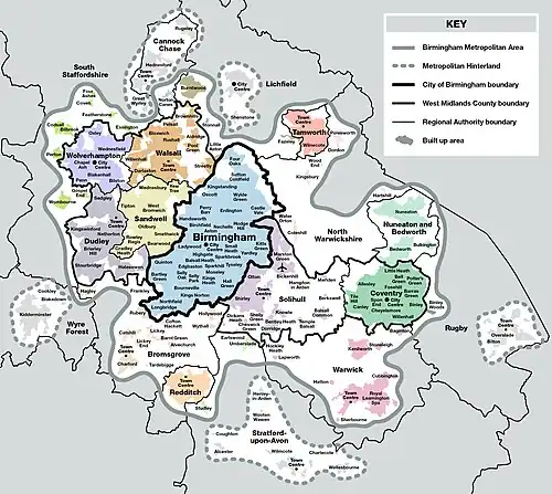 - West Midlands conurbation (also referred to as the Birmingham urban area)