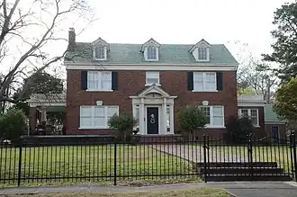 The Bishop Brookes House is a historic house at 407 North 6th Street in De Queen, Arkansas. It is a 2+1⁄2-story brick structure, built between 1922 and 1928 by Bishop Brookes, Sr., the proprietor of the locally prominent Brookes Drug Store. The house is an excellent local example of Colonial Revival architecture, with a symmetrical facade, and a center entry with portico supported by Corinthian columns. The house remained in the Brookes family until 1995.[2]