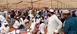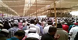 The Ijtema is a prayer meeting spread over three days, during which attending devotees perform daily prayers while listening to scholars reciting and explaining verses from the Quran, the central religious text. Speakers include Islamic scholars from various countries. It culminates in the Akheri Munajat (concluding supplication or final prayer), in which millions of devotees raise their hands and pray to Allah for world peace.[5][8] Al-Quds Al-Arabi compared Ijtema with Kaaba to the poor people of the region.[9]