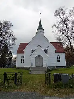 Bjarkøy Church (Norwegian: Bjarkøy kirke) is a parish church of the Church of Norway in Harstad Municipality in Troms county, Norway. It is located in the village of Nergården on the island of Bjarkøya. It is one of the churches for the Vågsfjord parish which is part of the Trondenes prosti (deanery) in the Diocese of Nord-Hålogaland. The white, wooden church was built in a cruciform style in 1766 using plans drawn up by an unknown architect. The church seats about 350 people.[1][2]