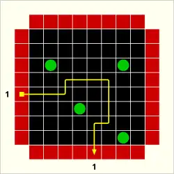 Black Box is played on a two-dimensional grid. The object of the game is to discover the location of objects ("atoms", represented by metal balls in the Waddingtons game and by yellow balls in the Parker Brothers version) hidden within the grid, by the use of the minimum number of probes ("rays"). The atoms are hidden by a person in a two-player game. In a solitaire game, they are either hidden by a computer or they are pre-hidden; in this case, the results of various probes are resolved by looking them up in a book. The seeker designates where the ray enters the black box and the hider (or computer or book) announces the result (a "hit", "reflection", or "detour"/"miss"). This result is marked by the seeker, who uses these to deduce the position of the atoms in the black box.