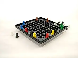 Black Box is an abstract board game for one or two players, which simulates shooting rays into a black box to deduce the locations of "atoms" hidden inside. It was created by Eric Solomon. The board game was published by Waddingtons from the mid-1970s and by Parker Brothers in the late 1970s. The game can also be played with pen and paper, and there are numerous computer implementations for many different platforms, including one which can be run from the Emacs text editor.