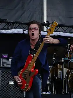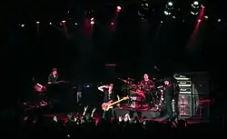 The completed quartet first performed together during the encore at one of Bonamassa's solo shows in Riverside, California on March 17, 2010, playing "One Last Soul" and a cover version of the Deep Purple song "Mistreated".[4] The name Black Country Communion was not finalised until May 2010,[4] after the threat of legal action from another band prevented the group from using the name Black Country.[5] Hughes later revealed that the band in question, from Baltimore, Maryland, reportedly demanded $500,000 for the right to use the name Black Country, a move which he quickly condemned as "just rude".[6] The bassist later elaborated on the situation in a 2016 interview, explaining that his group had successfully bought the name Black Country from the Baltimore-based band (for less than the initially touted $500,000), although by the time the case was settled it was too late to use the name and they instead had to continue using the longer moniker Black Country Communion.[7]