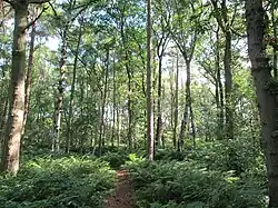 By 1800, drainage ditches had been created, in a pattern of concentric rings, and trees had been planted. The area now has mature trees from that period, and naturally occurring trees including alder, oak and birch. In wetter parts there are plants such as yellow iris and royal fern.[1]