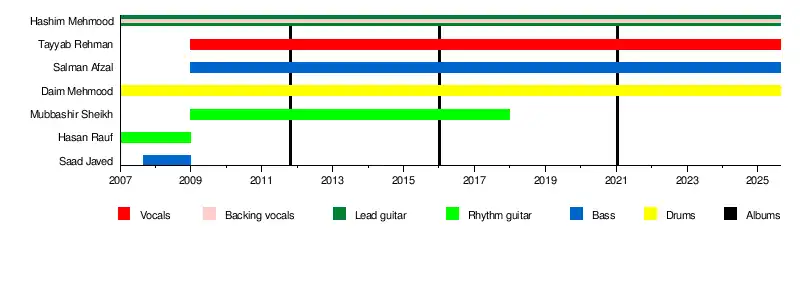 Black Hour, often stylized as Blackhour, (Urdu: بلیک آور) is a Pakistani progressive rock band from Islamabad, founded in 2007 by guitarist Hashim Mehmood.[1] After several lineup changes in its early years, the band settled on four members for more than a decade: Hashim Mehmood, drummer Daim Mehmood, bassist Salman Afzal and lead vocalist Tayyab Rehman. Black Hour has consistently incorporated progressive, folk, classical, and alternative influences into its compositions, as well as strong influences from heavy metal, especially in their early works.