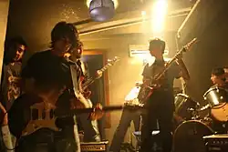![]() Black Hour performing live at Face Mela 2019, Pakistan (L–R): Hashim Mehmood, Tayyab Rehman, Daim Mehmood, & Salman Afzal | |