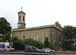 Many of the houses date back to the early nineteenth century.[2] The Anglican St Peter's Church opened in the lane in 1829.[3] The Regency era St Peter's Square, laid out in the 1820s, is directly to the west of the lane. The Victorian Westcroft Square is to the north of the lane across King Street. The lane was intersected by the Great West Road in the 1930s and the severed southern end nearest to the Thames (including the Black Lion pub) is now known as South Black Lion Lane. A number of the buildings are now listed.[4][5] The Cross Keys pub is located in the street.