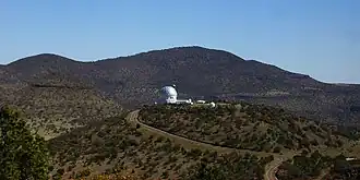 Black Mountain is the ninth-highest peak in the Davis Mountains and it ranks as 21st-highest in the state of Texas.[1][2] Topographic relief is significant as the summit rises over 2,000 feet (610 m) above Big Aguja Canyon in 1.25 mile (2 km). The mountain is composed of 35 million-year-old igneous rock.[4] Based on the Köppen climate classification, Black Mountain is located in a semi-arid climate zone with hot summers and cold winters.[5] This climate supports Douglas fir, aspen, Arizona cypress, maple, ponderosa pine, and madrone growing on the slopes.[6] Precipitation runoff from the mountain's slopes drains into the Pecos River watershed.[1] The mountain's toponym has been officially adopted by the United States Board on Geographic Names,[3] and has been reported in publications since at least 1902.[7]