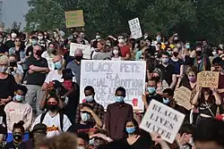 The George Floyd protests and subsequent Black Lives Matter demonstrations in the Netherlands in 2020 led to a further decrease in acceptance of the traditional version of Zwarte Piet. A June 2020 survey saw a drop in support for the character's traditional blackface depiction. 47 percent of those surveyed supported the traditional appearance, compared to 71 percent in a similar survey held in November 2019.[74] However, a December 2020 survey by EenVandaag revealed that 55 percent of those surveyed still supported the traditional appearance of Zwarte Piet while 34 percent supported changing the character's appearance and 11 percent were unsure. The survey reported that 78 percent did not see Zwarte Piet as a racist figure whereas 17 percent did. The most frequently mentioned reason of those who were in favor of changing the character was to put an end to the discussion.[75]