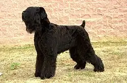 ![]() Black Russian Terrier at a dog show | |||||||||||||||||||||||||