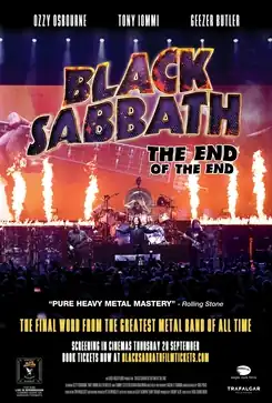 Black Sabbath: The End of the End is a 2017 concert documentary film about English heavy metal band Black Sabbath, performing the final show of their farewell concert tour, known as The End Tour. The performance took place at the Genting Arena in Birmingham, England, on 4 February 2017, and features founding Black Sabbath members Ozzy Osbourne, Tony Iommi and Geezer Butler, with session drummer Tommy Clufetos filling in for the band's original drummer, Bill Ward. The film also features footage of "The Angelic Sessions"—the band's final studio recordings, recorded in the days following the final show.
