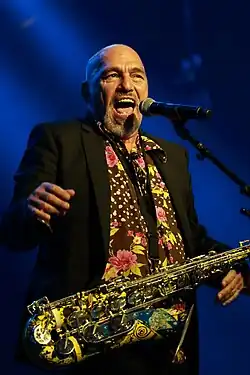 The Black Sorrows began as a loose pick-up band in Melbourne in 1983.[1][2] They played mostly covers of R&B, zydeco, soul and blues music.[1] An early line-up was founding mainstay, Joe Camilleri (aka Joey Vincent) on vocals, saxophone and guitar (ex-The Pelaco Brothers, Jo Jo Zep & The Falcons); with Jeff Burstin on guitar (ex-Company Caine, Jo Jo Zep & The Falcons), Wayne Burt on guitar and vocals (ex-Jo Jo Zep & The Falcons, the Fabulaires); George Butrumlis on piano accordion; Wayne Duncan on bass guitar (ex-Daddy Cool, Living Legends); Steve McTaggart on violin; Paul Williamson on clarinet and saxophone; and Gary Young on drums (ex-Daddy Cool, Jo Jo Zep & The Falcons).[1][3]