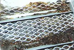 Several gemstones, such as garnet, topaz, ruby, sapphire, and diamond are found in placers and in the course of placer mining, and sands of these gems are found in black sands and concentrates. Purple or ruby-colored garnet sand often forms a showy surface dressing on ocean beach placers.