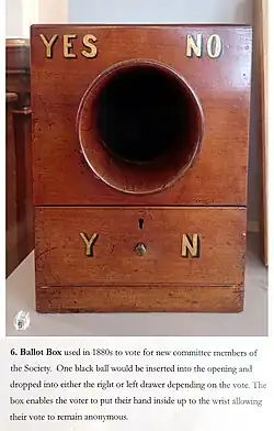 The term still remains in use for many different electoral systems which have applied from club to club and from time to time: for example, instead of differently coloured balls, ballot-balls may be dropped into separate "yes" or "no" drawers inside the ballot box.