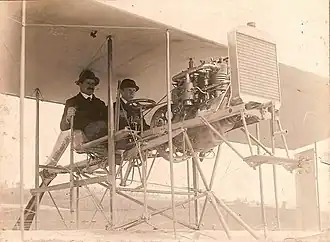| Harold Blackburn (left) at the controls of the Blackburn-Walker biplane in its original configuration. | |
