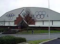Blackburn Arena is an Olympic-size ice arena in Blackburn, England. It is the home of Blackburn Hawks and Blackburn Eagles ice hockey clubs. The arena, which was opened in April 1991 by Christopher Dean and Jayne Torvill, holds 3,200 people and has an ice pad of 60 by 30 metres (197 by 98 ft).[1][2] The arena was built to coincide with Manchester’s 1996 Summer Olympic bid, with the possibility of boxing contests being held there. It was refurbished in 2005. It is currently operated by Planet Ice.