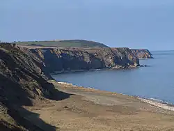 One of the earliest testaments to Blackhall Rocks is an Ordnance Survey taken of the Durham area from 1855-1857, where it is referred to as "Black Halls Rocks".[1] The area was the site of the eponymously named Blackhall Rocks Hotel, a Temperance Hotel. The Hotel was converted into temporary accommodation by Easington (district) Council the 1940's, and was eventually demolished in the 1960's. In 1907, Blackhall Rocks railway station opened, primarily serving tourists wishing to visit the cave formations present along the coast of Blackhall Rocks. Adjacent to the station, a siding and coal depot supplied coal from Blackhall Colliery 1 mile north to the surrounding area. On 4 January 1960, the station was closed to passengers, and on 7 December 1964, closed indefinitely.[2]