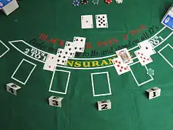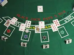 Many blackjack tables offer side bets on various outcomes including:[33]