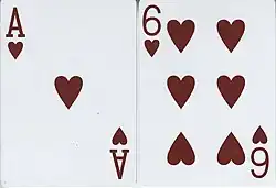1. ^ For the specific circumstance where the player has a pair of aces and is forbidden to split but permitted to hit.