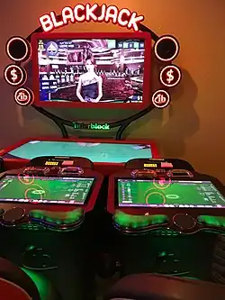 Blackjack (formerly black jack or vingt-un) is a casino banking game.[1]: 342  It is the most widely played casino banking game in the world. It uses decks of 52 cards and descends from a global family of casino banking games known as "twenty-one". This family of card games also includes the European games vingt-et-un and pontoon, and the Russian game Ochko.[2] The game is a comparing card game where players compete against the dealer, rather than each other.