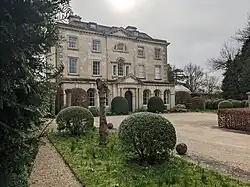 Just east of the house is a two-storey stable block with a large central dovecote, built in rubble stone in the mid-18th-century.[20] A lodge at the north-west entrance to the grounds, on the London-Bath road, was built in squared ashlar in the mid to late 19th century.[21]