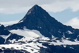 Blackthorn Peak, also known as Black Thorn, is a 4,117 foot (1,255 meter) mountain summit located at the head of Glacier Bay's Geikie Inlet in Glacier Bay National Park and Preserve, in the Fairweather Range of the Saint Elias Mountains, in southeast Alaska.[1] The mountain is situated immediately east of Geikie Glacier, 80 mi (129 km) west-northwest of Juneau, and 2.5 mi (4 km) north of Threesome Mountain, which is the nearest higher peak. Although modest in elevation, relief is significant since the mountain rises up from tidewater in a little over two miles. The mountain was given its descriptive name in 1896 by Harry Fielding Reid, an American geophysicist who studied glaciology in Glacier Bay.[1] Weather permitting, Blackthorn Peak can be seen from Glacier Bay, which is a popular destination for cruise ships. The months May through June offer the most favorable weather for viewing or climbing the peak.