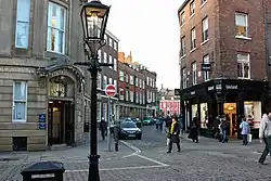 During the Georgian period, the street was the departure point for stagecoaches to the north.[5] In 1732, the York Assembly Rooms opened on the west side of the street, and these survive. An open area to their north was created in 1735, and this was sometimes known as "Blake's Square". In 1827, baths were opened on the street.[3][4]