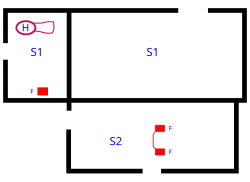 At the same time that S2 was built, a dividing wall, again of inferior quality, was built across S1 to create a western room.[15] There were no molehills within the smaller building, which had suggested that, unlike its neighbour, it has a buried solid floor,[1] and this was confirmed by excavation. The floor was originally made of mortar, relaid at least once, but then covered with a layer of flint cobbles, suggesting that it was a working area. The old hearth was not covered, so it may have still been used. A new fireplace was also added, apparently of a domestic design, although the context makes that function improbable.[15] A well-marked track led southwest down the slope from S1, and a large midden was close to the path. It has been suggested that a "clean" pit north of S1 was a well, with fresh water floating above the saltwater below, a phenomenon known from Blakeney Point[15] and elsewhere on the Norfolk coast.[23][24]