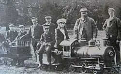 The track was laid in 1903 by Charles William Bartholomew (1850–1919) on his estate at Blakesley Hall. He was a wealthy civil engineer and landowner, major shareholder of the Great Central Railway and the East & West Junction Railway (E&WJR), self-proclaimed squire of the communities of Blakesley and Woodend. It was inaugurated in 1903 with a Cagney steam locomotive. In the following year, 1904, another Cagney steam locomotive was temporarily used on the track, which is now on display at the Strumpshaw Hall Steam Museum in Norfolk. In 1905, the petrol locomotive Petrolia was built and put into operation. The route was extended in 1909 to the bungalow of the farm, while a large part of the circle and the wye were dismantled. The locomotive Blacolvesley was delivered on 11 September 1909. The Cagney was then lent to the Sutton Hall Railway.[2]