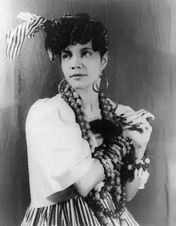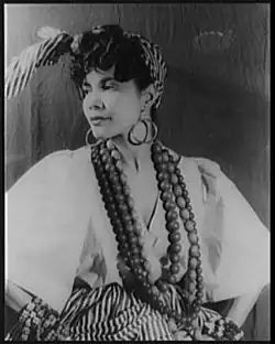 Blanche Dunn was born in Jamaica in 1911 and arrived in New York City in 1926. She had a role in the Broadway show Blackbirds of 1930 and the film The Emperor Jones (1933). She became a mainstay of the Harlem social scene, attending parties, galas, and Broadway opening nights.[1] Writer Richard Bruce Nugent notes that "a party was not a party, a place not a place, without Blanche."[2] She lived for a time in 1940 at Whale Cay in the Bahamas with speed boat racer Joe Carstairs.[3][4] Dunn posed several times for photographer Carl Van Vechten between 1924 and 1941,[1] notably in 1941 for his series Portrait Photographs of Celebrities.[3] She eventually married and moved to Capri, Italy.[1]