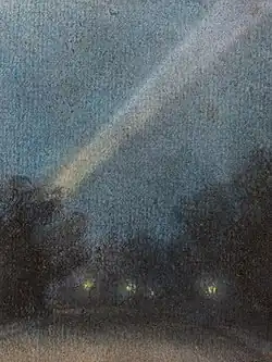 The Christchurch Mansion at Ipswich has exhibited its collection of seventy-seven pastels by Vulliamy, showing First World War searchlights flaring through urban streets at night.[16]