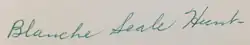 Blanche Seale Hunt was born in 1912 to Rufus and Pearl Dryman Seale in Fort Myers, Florida. She was two years older than her brother, Daniel. The family later relocated to Lincoln County in central Oklahoma. Hunt started teaching in 1934 and taught thirteen years at different Lincoln County school districts at Fallis, Mt. Vernon and Wellston schools.[1]