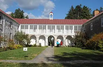 The slaves' quarters, referred to as the Quarters, was converted into laboratories and student and faculty housing. In 1941, the Quarters building was greatly enlarged with the addition of three Colonial Revival wings. This addition created a U-shaped building with the original Quarters section as the east wing. A research greenhouse was built at the same time.[3]