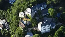 Blankenheim Castle (German: Burg Blankenheim) is a schloss above the village of Blankenheim in the Eifel mountains of Germany. It was built as a hill castle around 1115 by Gerhard I and became the family seat of the House of Blankenheim. The lords of Blankenheim were elevated to the countship in 1380. The counts were related to the counts of Manderscheid and, from 1469, were named Manderscheid-Blankenheim. With the extinction of the lines of Manderscheid-Gerolstein and Manderscheid-Kail (1742) the County of Manderscheid became the largest independent territorial lordship in the Eifel.