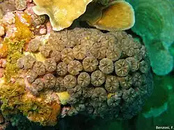 Blastomussa merleti, commonly known as pineapple coral, is a species of large polyp stony coral. It is unclear in which family the genus Blastomussa belongs.[2] This coral is native to the west and central Indo-Pacific region and is sometimes used in reef aquaria.