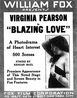 Blazing Love is a 1916 American silent drama film directed by Kenean Buel and starring Virginia Pearson and Louise Huff.[1]