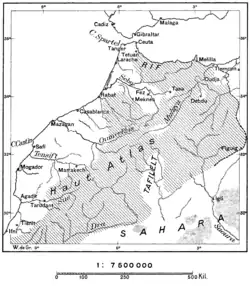 Bled es-Siba literally means "land of dissidence"[2] or "region of anarchy", as opposed to Bled el-Makhzen, which refers to the region under the control of the Makhzen governing institution.[3]