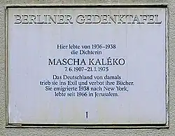 - ^ "Gedenktafel für Mascha Kaléko". www.berlin.de (in German). 2 August 2021. Retrieved 22 January 2022.