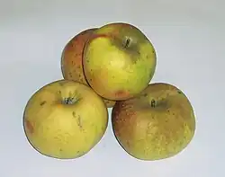 Blenheim Orange (Kempster's Pippin) is a cultivar of apple. It was found at Old Woodstock, a suburb of Woodstock, Oxfordshire near Blenheim in England in about 1740. It is considered a dual-purpose apple, usable from late September as a cooking apple, and from October to January as an eating apple.[1][2]