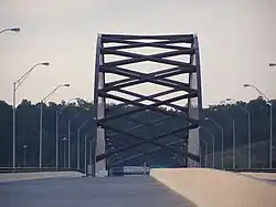 Blennerhassett Island Bridge, with a network arch design,[1] carries U.S. Route 50 (Appalachian Development Highway System's Corridor D) over the Ohio River and the historic Blennerhassett Island between Belpre Township, Ohio and Washington, West Virginia in the United States. Construction of the bridge was overseen by the Walsh Construction Company of Chicago, and it opened to traffic on June 13, 2008.[2] The completion of the span completed Corridor D between Interstate 275 east of Cincinnati to Interstate 79 at Clarksburg, West Virginia.