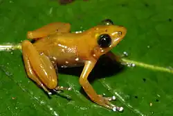 Blommersia angolafa is a species of frogs in the family Mantellidae. This recently described species is endemic to eastern Madagascar.[2] The specific epithet is derived from the term “angolafa” or “angolafo”, which is the Malagasy vernacular name used by the Betsimisaraka people for the Dypsis palm species (mostly for Dypsis lastelliana), whose leaves and prophylls are the habitat for this frog.[1]