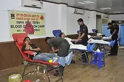 1 October is celebrated as the national voluntary blood donation day.[42] Blood donation agencies often organize workshops to educate people about the benefits of donating blood.[43] With a huge population of youth, blood donation drives are conducted by hospitals and organisations at college campuses.[44][45] Blood donors and their family members are often given priority in case of emergency or accidents. 32 mobile blood banks were introduced in 2010 to facilitate donation in remote regions.[46][47] In 2016, the government launched an initiative called E-RaktKosh (Rakt: blood, Kosh: repository), a web-based mechanism that integrates all blood banks in the state into a single network, providing information about blood camps and the availability of blood in hospitals throughout the country.[48] A mobile application for the E-RaktKosh portal was launched in 2020 to improve accessibility.[49]