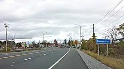The first known reference to "Blossom Park" appeared in a subdivision plan which was drafted by the Bytown Suburb and Land Company for the north half of Lot 9, in the 4th Concession, Rideau Front of the Township of Gloucester which was approved by the township council on November 6, 1911 and subsequently filed at the Carleton County land registry office in Ottawa.[2] A street grid was established but little development took place and the area remained essentially rural through the first half of the 20th century. It was transformed into a suburban community with the construction of bungalows on 150 x 100 foot lots along Central Boulevard (now Kingsdale Avenue) and Rosebella Avenue and on the north side of Lawrence Avenue (now Queensdale) between Albion and Conroy Roads in the 1950s. Lots on the south side of Queensdale between the future site of the Sawmill Creek Housing Co-op (built 1983-84) and Conroy were sold piecemeal for residential development beginning in 1960.
