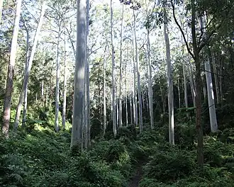 The Blue Gum High Forest of the Sydney Basin Bioregion is a wet sclerophyll forest found in the northern parts of Sydney, New South Wales, Australia. It has been classified as critically endangered, under the New South Wales government's Threatened Species Conservation Act 1995.[1] The principal canopy trees in this forest community are Sydney blue gum and blackbutt which are usually seen between 20 and 40 metres tall. 180 species of indigenous plants have been identified at Dalrymple-Hay Nature Reserve.