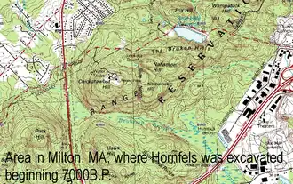 - ^ Les Tyrala. "The Hard Truth: The Geology of the Blue Hills" (PDF). Friends of the Blue Hills. Archived from the original (PDF) on September 28, 2011. Retrieved January 31, 2014.