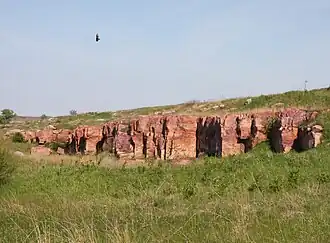 ![]() Sioux Quartzite bedrock in Blue Mounds State Park | |